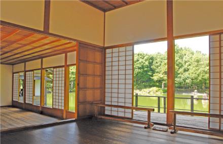 除了北侧房屋之外,御月见之间的所有角度都能欣赏庭园的景色。在东侧的月见台可以仰望明月升起,观赏其万千变化。